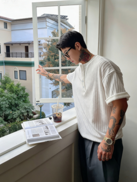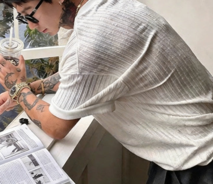 Men’s Slim-Fit V-Neck Polyester Shirt – Lightweight Casual Top